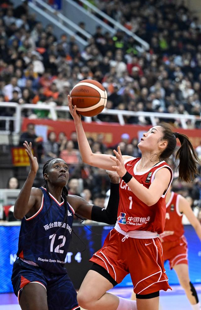 2月11日,在宁夏银川举行的2026年中国女篮热身赛中,中国队119比74战胜国际女篮联队。
