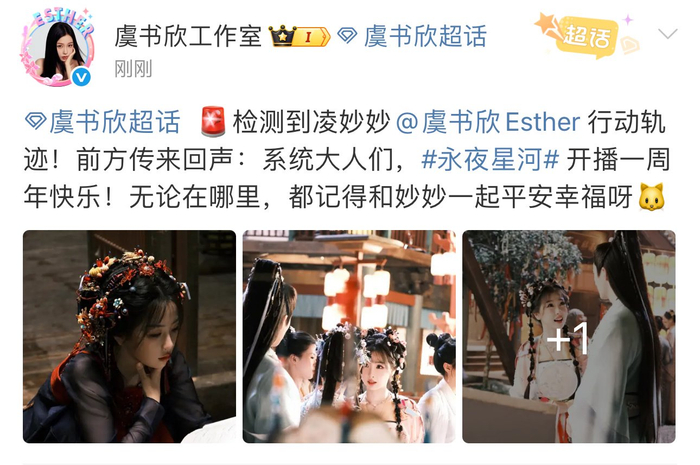 虞书欣工作室发文庆祝永夜星河开播一周年并发布新物料