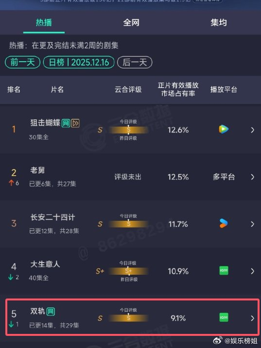 #虞书欣何与双轨云合S级#虞书欣何与新剧《双轨》云合评级出来了,S级剧集,朝朝暮暮的哥妹爱情很好嗑,今晚高甜预警,都给我去看起来#微博跨年狂欢节##跨年热梗制造机#