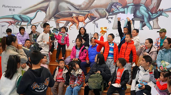 据悉,本次活动依托馆藏珍品,搭配顶级专家学者打造了一场科普盛宴。其中,中国科学院古脊椎动物与古人类研究所副研究员王强老师和中国古动物馆科普老师李慧分别带来“探究蛋的奥秘”“中国恐龙明星”主题科普讲座。除此之外,科普剧《重返白垩纪——飞上蓝天的恐龙》延庆首演成为本次活动又一大亮点。值得一提的是,剧中所有角色均由7至12岁的中国古动物馆优秀小讲解员扮演,孩子们充满童真与热情的表演,将紧张刺激的冒险情节与严谨的古生物学知识巧妙融合,赢得了观众阵阵掌声。