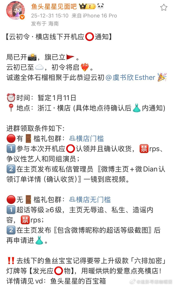 虞书欣张云龙新剧《云初令》开机,粉丝线下应援