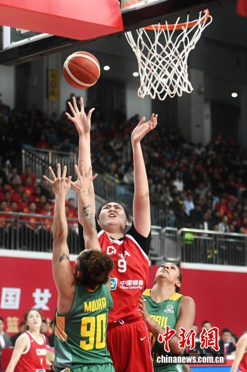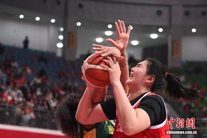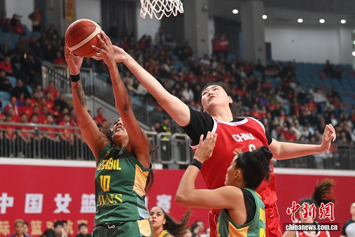 3月4日,2026年中国女篮热身赛(长沙站)首场比赛举行,中国队以74:69险胜巴西队。图为双方队员争抢篮板球。中新社记者 杨华峰 摄