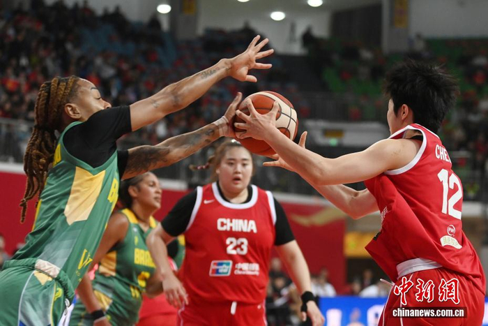 3月4日,2026年中国女篮热身赛(长沙站)首场比赛举行,中国队以74:69险胜巴西队。图为双方队员争抢篮球。中新社记者 杨华峰 摄