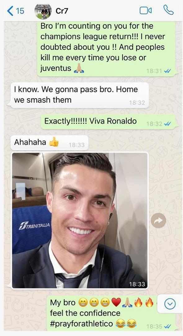 7年前的今天,在尤文图斯与马德里竞技第二回合比赛之前,帕特里斯·埃弗拉和克里斯蒂亚诺·罗纳尔多进行了这段WhatsApp对话。 ✨