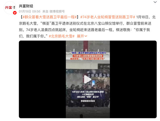 普通棋迷纷纷留言致敬,“聂老,一路走好”“愿棋圣一路走好,棋魂照人间”“棋圣千古,旋风满天,永垂不朽” 等话语,质朴却饱含深情。更有 74 岁老人凌晨四点起床,坐轮椅冒雪赶赴八宝山,只为送聂老最后一程,棋迷敬挽 “你属于我们,我们属于你”,道尽众人对聂老的不舍与爱戴。