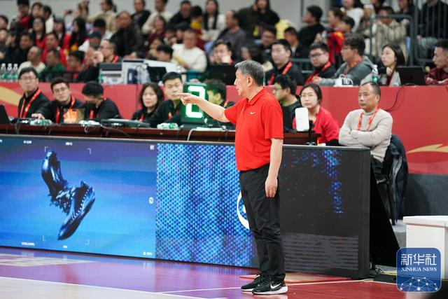 ↑ 中国队主教练宫鲁鸣在比赛中指导。