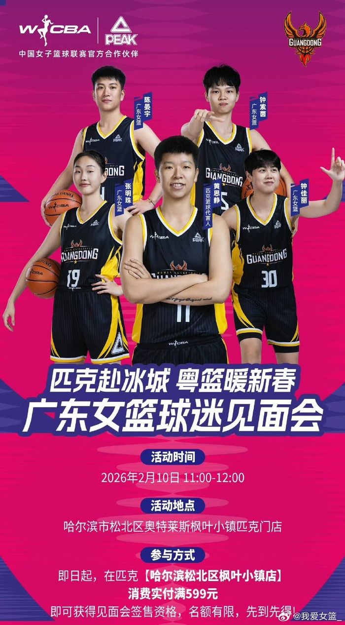 【展开球迷见面会积极拥抱市场,为广东女篮点赞!】近日,匹克体育官宣2月10日11:00,广东女篮将在哈尔滨枫叶小镇开启球迷见面会,球队主教练黄思静将携钟佳丽、张明珠等球员亮相,为球迷提供签名合影等互动机会。#探营wcba球队#