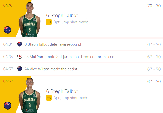 本场比赛,日本女篮一度创造11分的领先优势,前三节具有绝对优势的情况下,第四节遭到澳大利亚疯狂反扑,连续的高强度逼抢下,日本女篮外线投篮命中率持续下滑,内线同样未能有人站出来。日本女篮在第四节长达7分钟的时间段,全队只有1次运动战得分,高田真希跳投2分命中。