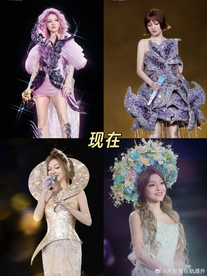 此前,张韶涵在“觅光”巡演的众多造型频频出圈,被网友称作“造型师把张韶涵当精灵打扮”。