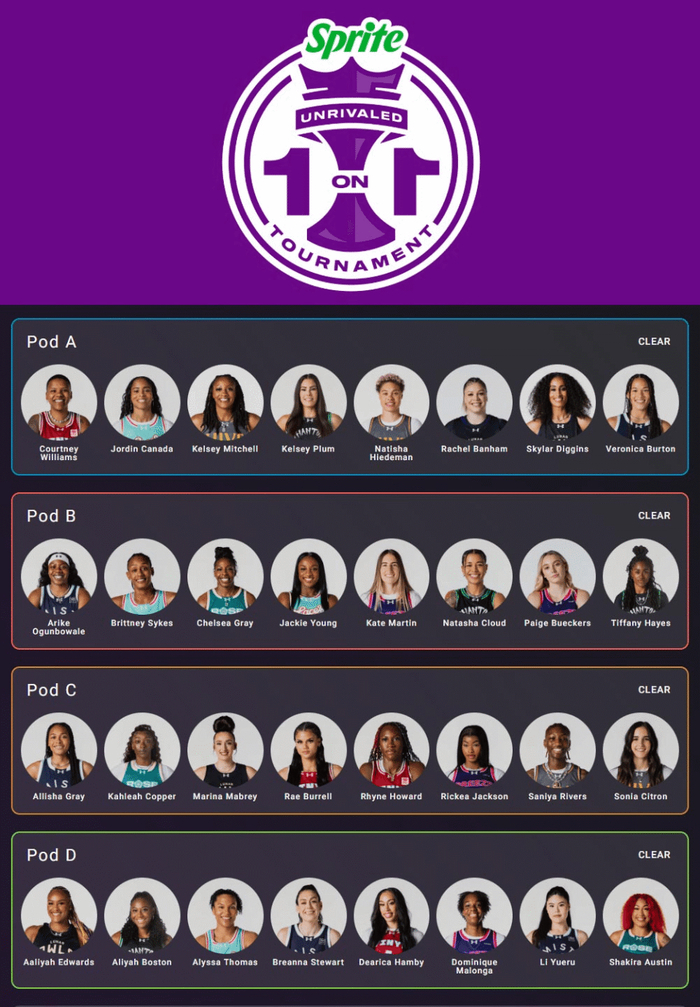 Unrivaled联赛1对1单挑赛参赛选手: