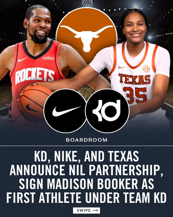在与耐克的合作下,德克萨斯大学女篮前锋麦迪逊-布克将成为首位获得KD球员版球鞋(KD PE)、服装等资源支持的运动员。