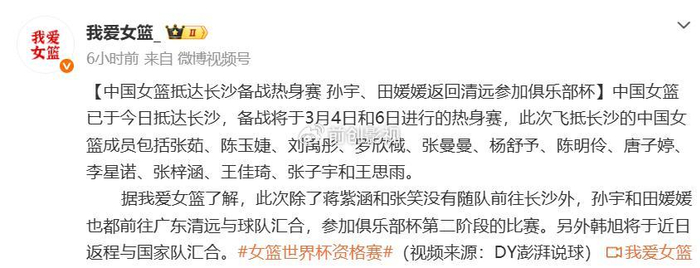 目前,跟随中国队前往长沙的还有13名球员,分别是王思雨、张茹、刘禹彤、张子宇、陈玉婕、罗欣域、张曼曼、杨舒予、陈明伶、唐子婷、李星诺、张梓涵、王佳琦。而此前跟随国家队集训的田媛媛、张笑等4人,他们则提前离队了。这也就意味着,这四人已经提前无缘世预赛最终大名单了。当然,女篮目前热身赛大名单,也并非是中国队最终阵容。
