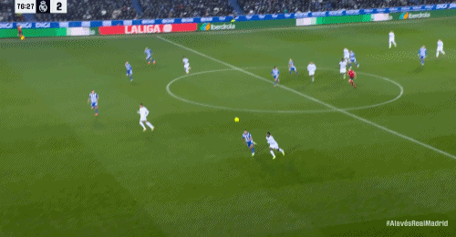 比赛刚刚开打第2分钟,皇马临时拼凑的后防,就被阿拉维斯打穿,好在雷巴赫处于越位位置的打门偏出,本赛季表现出色,可以说一个人扛着银河战舰前进的姆巴佩,差一点帮助皇马打破场上平衡,大禁区左侧的兜射击中横梁后出了底线。