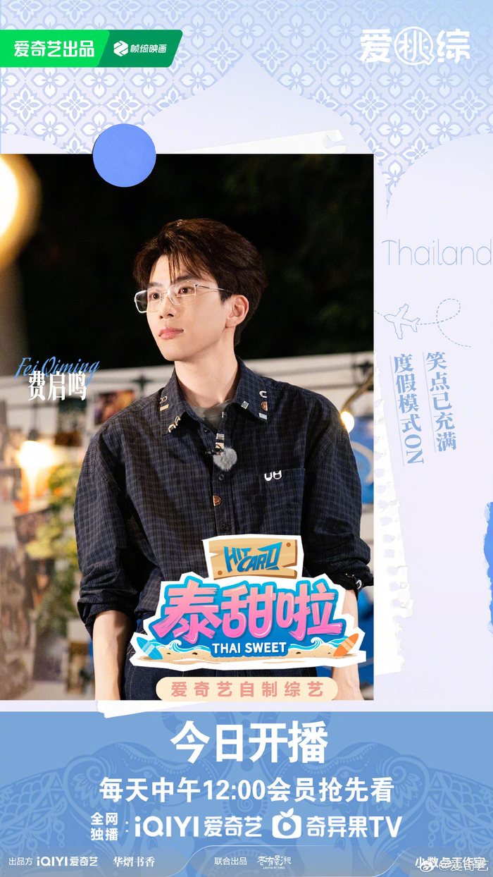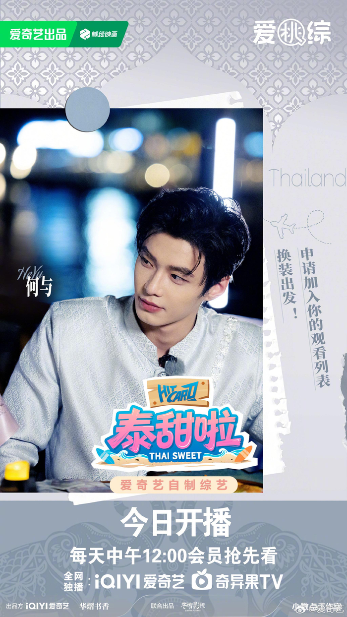 #泰甜啦# #泰甜啦开播# 前往泰兰德的欢乐旅行团全员集结完毕!各具特色的旅行伙伴@虞书欣Esther @何与 @费启鸣 @MikeAngelo吴翊歌 @李澳炼金术士 @尹浩宇Patrick 与惊喜旅伴@张碧晨 已就位,即将共同书写一段奇遇。每天中午12:00爱奇艺全网独播,欢乐旅程即将启航!