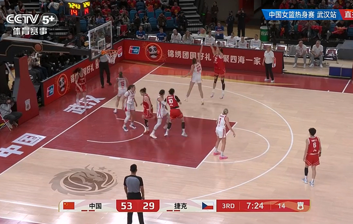 对阵捷克队的这场比赛,中国女篮仍派出了与前两场比赛一样的年轻首发阵容,分别是杨舒予、罗欣棫、张曼曼、唐子婷、陈明伶。比赛开始后,唐子婷手感不错连拿8分,捷克队整体实力与中国队有差距,首节比赛中国队27比13领先。第二节比赛,张子宇一上来就以绝对高度篮下得分,张曼曼则是一个抢断得分,让中国队领先达到15分。半场结束,中国队51比27领先。