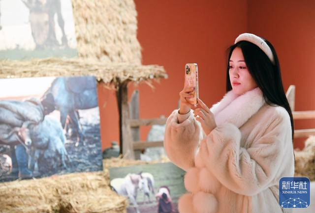↑ 12月17日,在北京时代美术馆,观众参观展览《觉醒·绽放》。