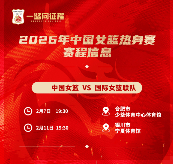 此外,中国女篮还将于3月4日&6日于长沙与巴西进行热身赛。