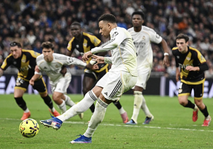 雷速体育2月1日讯 2025/26赛季西甲联赛第22轮,皇马主场2-1力克巴列卡诺。比赛伤停补时阶段第10分钟,皇马获得点球机会,姆巴佩主罚命中,帮助皇马绝杀对手。