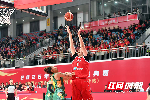 红网时刻新闻3月4日讯(摄影 李长宏 记者 周雨墨 符洹雨)3月4日晚,2026年中国女篮热身赛在长沙民政职业技术学院大运馆举行。最终,中国女篮74-69击败巴西女篮。3月6日,两队将进行第二场较量。