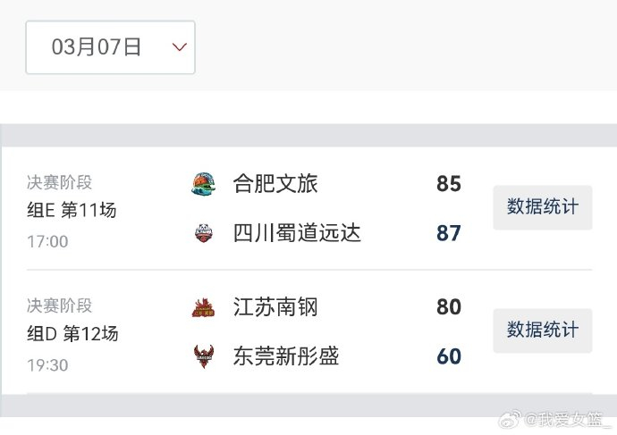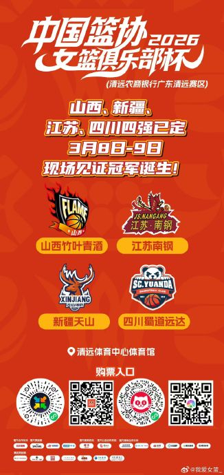 【2026女篮俱乐部杯第六日综述:四川胜合肥锁定最后一个四强席位 半决赛对阵出炉】2026中国篮协女篮俱乐部杯第二阶段第六日的较量在广东清远精彩继续。合肥女篮和四川女篮的晋级焦点战打得难解难分,终场前合肥女篮外援纳雷德有机会通过罚球扳平比分,但是两罚不中错失良机,最终两分惜败。江苏女篮大比分战胜广东女篮,保持第二阶段小组赛全胜战绩。明天(3月8日)的两场半决赛分别是17:00山西竹叶青酒 vs 新疆天山,19:30江苏南钢 vs 四川蜀道远达。#探营wcba球队#